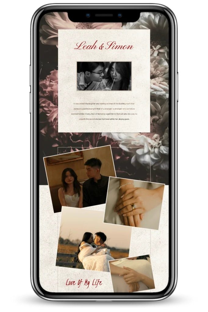 A clean, elegant digital version of a printed invite — with all the essentials and a short love story. Perfect for couples who want something simple, special, and stress-free.